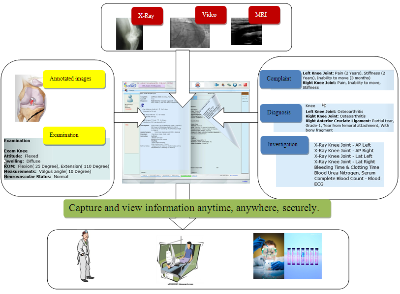 It allows upload of X-Ray, MRI, Ultrasound, ECG, CT-Scan, PET-Scan, Angio, surgical videos, pictures and more.