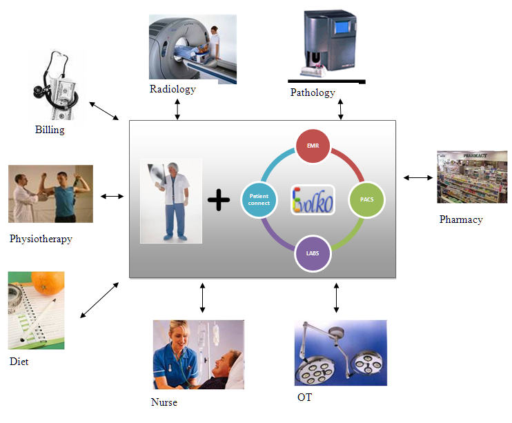 Evolko Enterprise EMR captures patients treatment and decision making information at every level; Front desk, Nurse station, Doctor's office, OT, OPD, labs, pharmacy. A complete patient record is created and available anytime, anywhere.